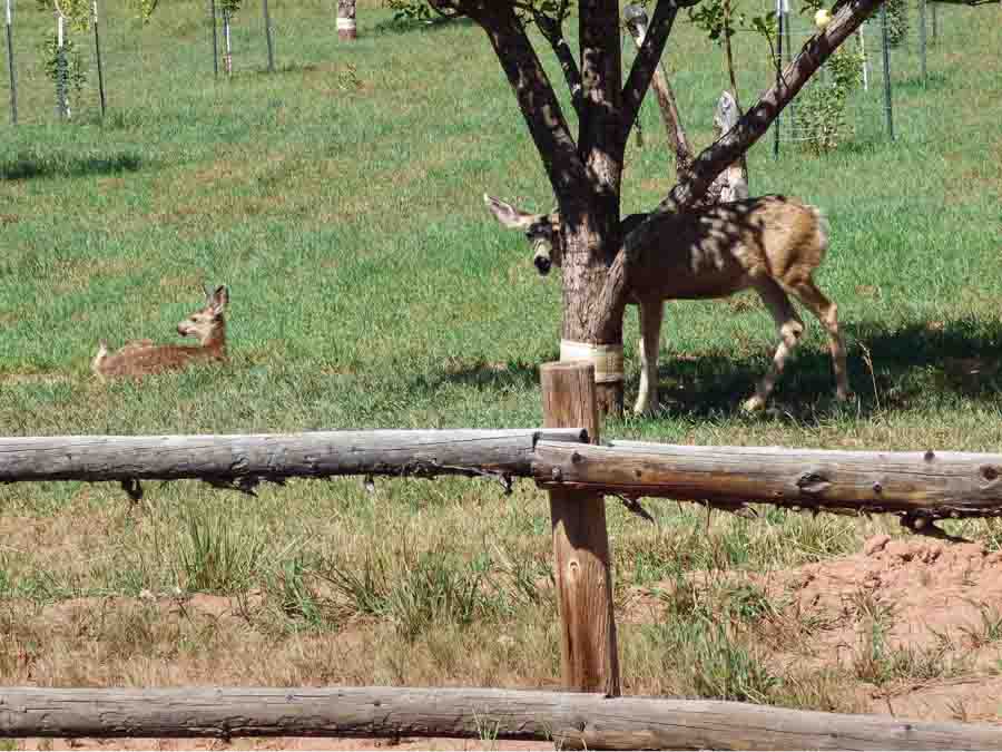 The park has several fruit orchards planted by the Mormon settlers. This doe was eating apples while her fawn rested nearby.