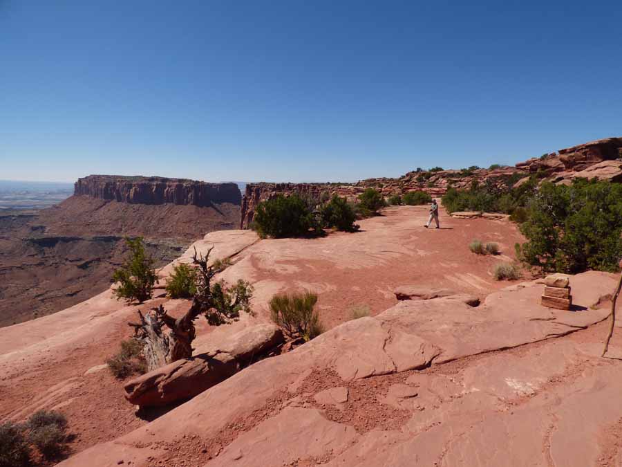 The Island in the Sky district of the Canyonlands National Park is a mesa about 2,200 feet above the confluence of the Green and Colorado Rivers. We could not see any water though; the rivers were down in canyons within the canyon.