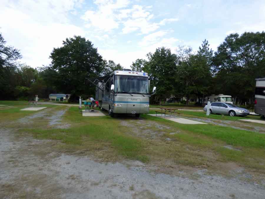 We got to Lake City RV Resort at 1515 Central time. We had crossed into the Eastern time zone when we crossed the Apalachicola River. The RV “resort” is really the kind of place along the interstate where you would stop for the night. It is nice enough, but the spaces are very narrow, which does not add to the resort aura. We are very close to the interstate.