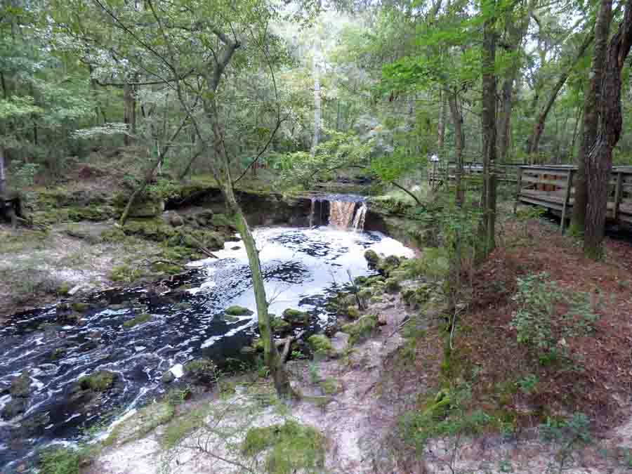 We headed back to the boardwalk and took the other fork. Or, the other tine of the fork. My picture does not do it justice; it is actually a pretty spot. The waterfall is about 10 feet high in Andy’s estimation. There is a large bowl carved out by the creek over the eons.