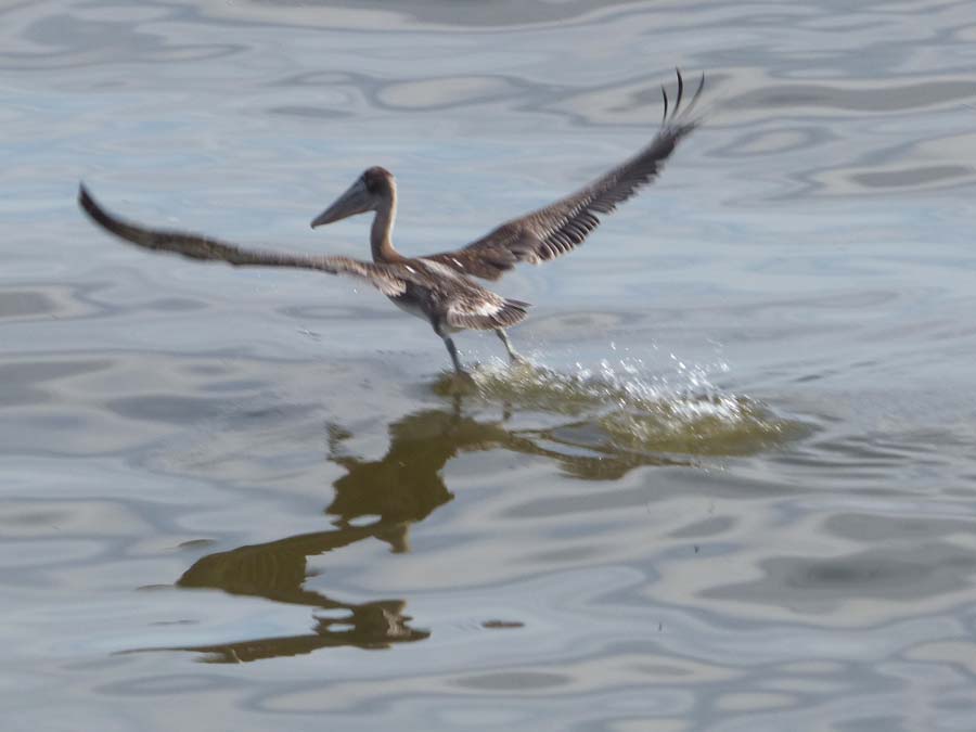 You may have noticed that all my pictures are of pelicans either taking off or landing. That is because I am still hopelessly inept at finding them through the viewfinder when they are flying.