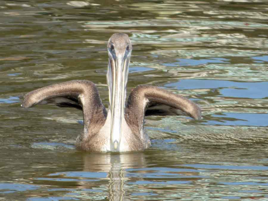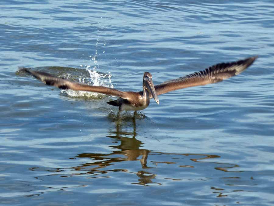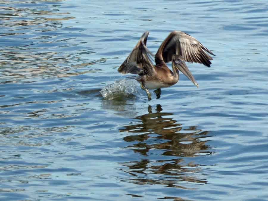 While waiting for the food and after I finished eating, I amused myself by taking pictures of the most magnificent and acrobatic of the bird world, the pelicans. Andy laughed at me because I am always trying to get the “great” pelican shot, but mostly get pelican butts. I got a few nice ones today though.