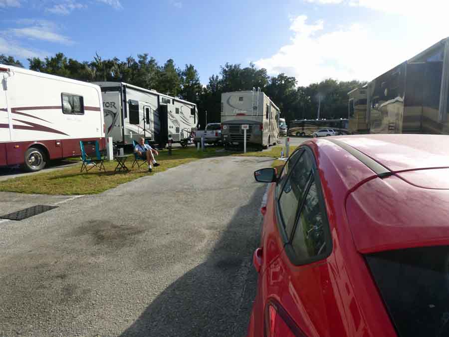 Those of you who drive motor homes and those who have read my logs for the past few years will be familiar with an RV dealer and repair facility. So, for the rest of you, I took some pictures of my surroundings today. You can see an aerial view on Google Earth with this address:  4505 Monaco Way, Wildwood, FL 34785. It is a large piece of property, larger than Google shows because they now have recreational vehicles parked in a big field along the highway.