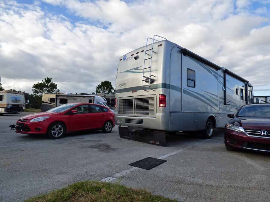 It was well past quitting time when Mechanic Kevin drove Sao back to our spot. We watched him back the motorhome in between the two cars.