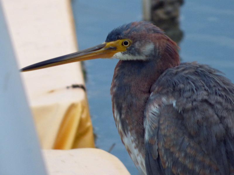 The heron was close to the seawall, so I got a portrait. The float in the background is not so great.