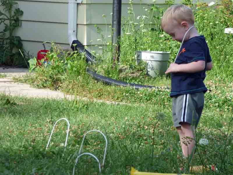 I set it up in the too-tall grass and showed the boys how to play it. It was a game of croquet like you’ve never seen before. They were too close together and swinging wildly. They didn’t get the concept of taking turns. I was sure someone was going to get whacked with a mallet.