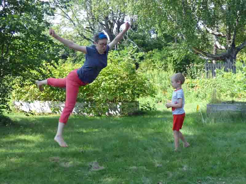 Owen lost two points for not having his feet off the ground in this event. I like the upside-down smile.