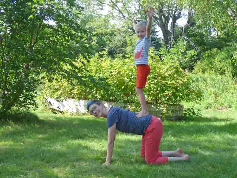 Here is a pommel horse stunt I did not see on television this week. Owen did a fine leap over the pommel horse while Cam crawled underneath.  The pommel horse survived by telling Owen to put his hands on her back and to leapfrog over, and not to jump up and land with his feet.