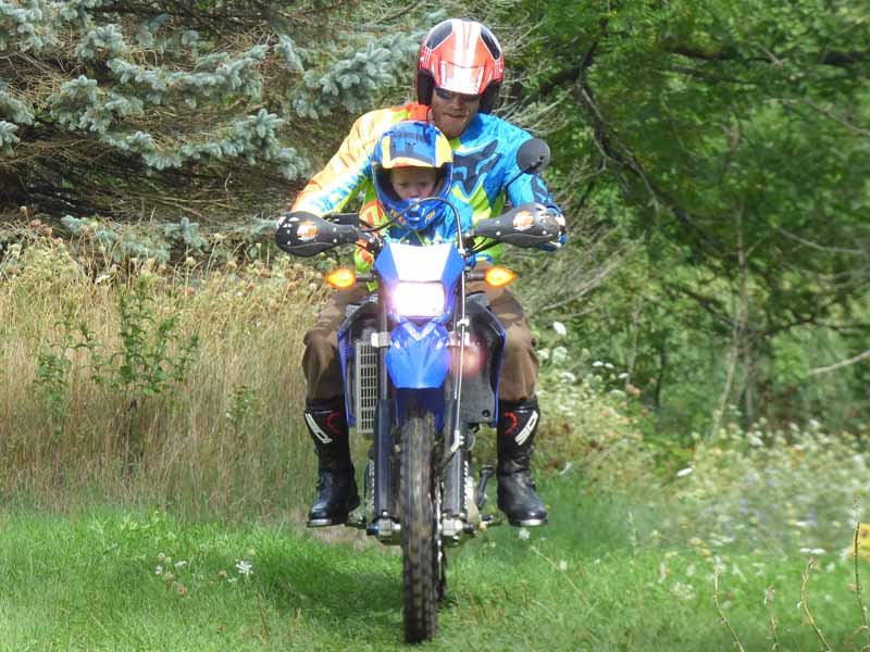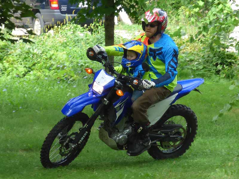 I watched as the boys took turns riding with George on a course around the front and back yard. It was hard to tell them apart in their matching motorcycle garb except that Owen is a bit taller in the saddle. Owen was very serious about riding.