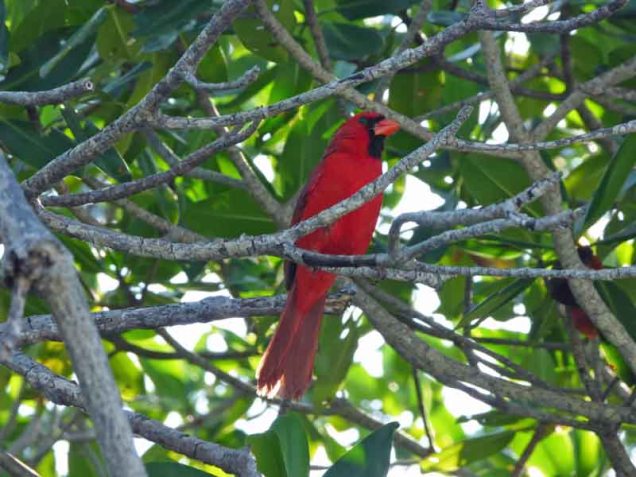 In the afternoon, we walked to the waterfront to check the ocean. Several cardinals were flitting around and I got a picture of one. Too bad the focus is not good.