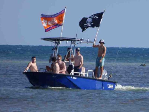 They are the Clemson variety, as I determined from the orange and purple flag on the second boat.