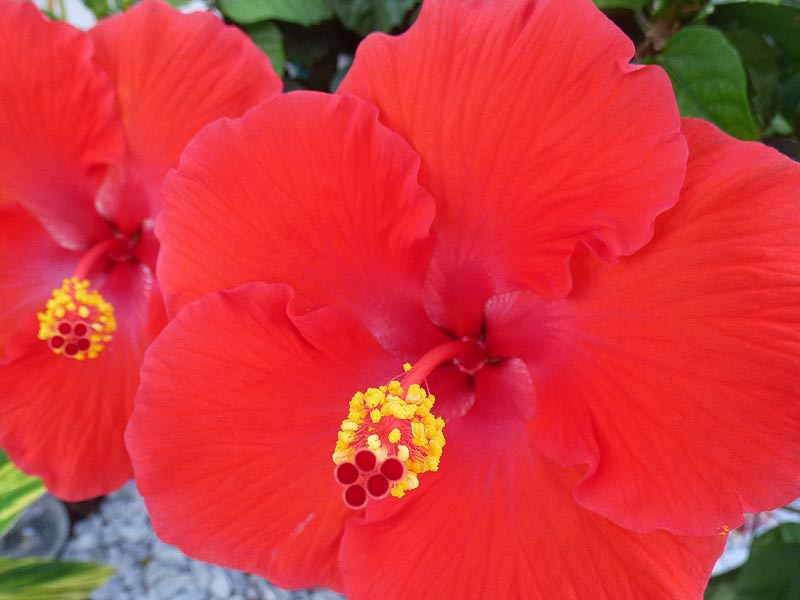 We always have Bougainvillea and hibiscus in bloom, but there are many more flowers in the spring. I did not capture it with the camera, but these hibiscuses are the deepest, brightest red imaginable.