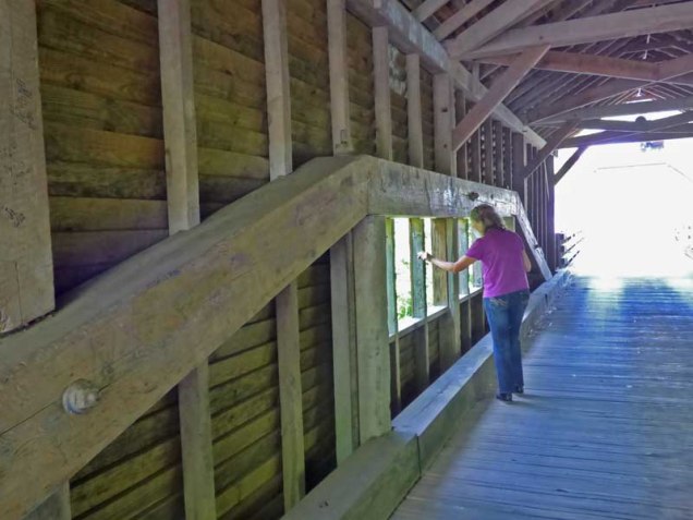 On the way home, we stopped at the Harrisburg Covered Bridge. I had seen the sign in the past, but we never went down that road to explore it. Linda directed us. The bridge is over the Little Pigeon River. Fortunately, there was a spot to pull off the road for a better look.