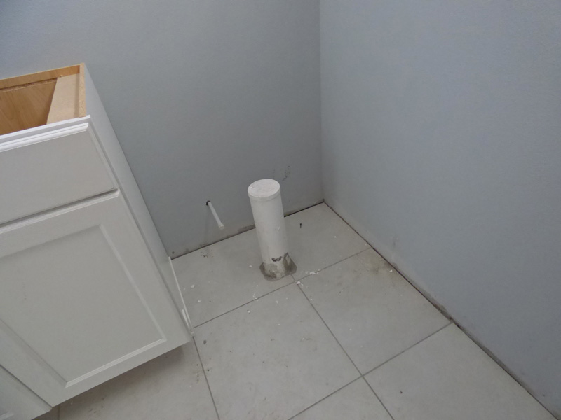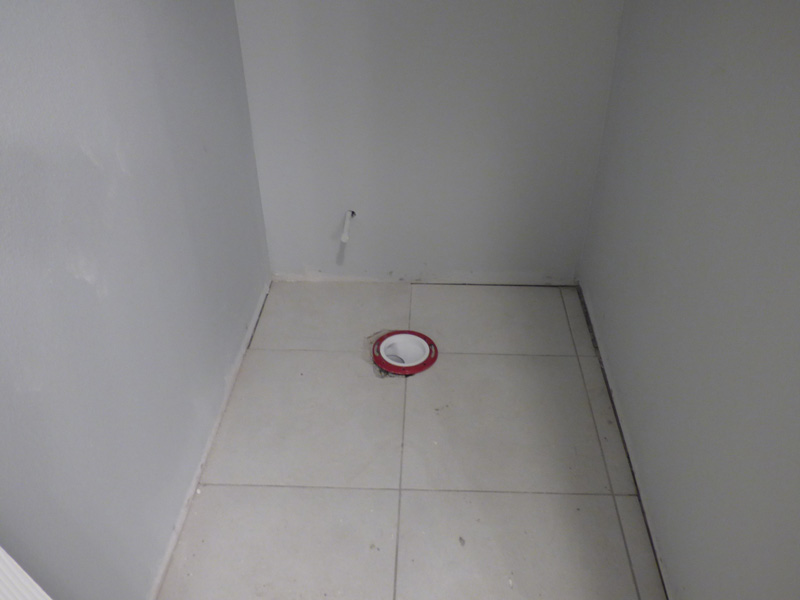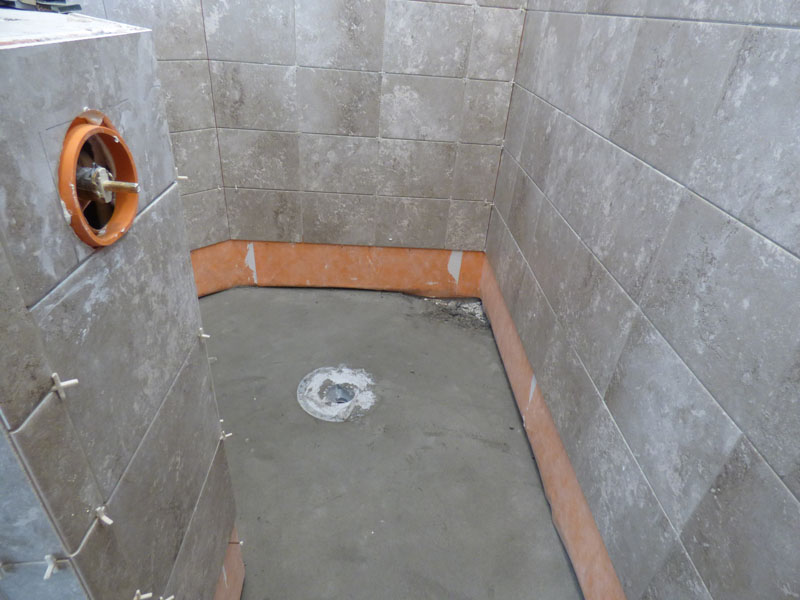 The only other change we noted was the master bath shower stall. A cement floor had been poured, except for one corner. What’s up with that? Did he run out of cement?