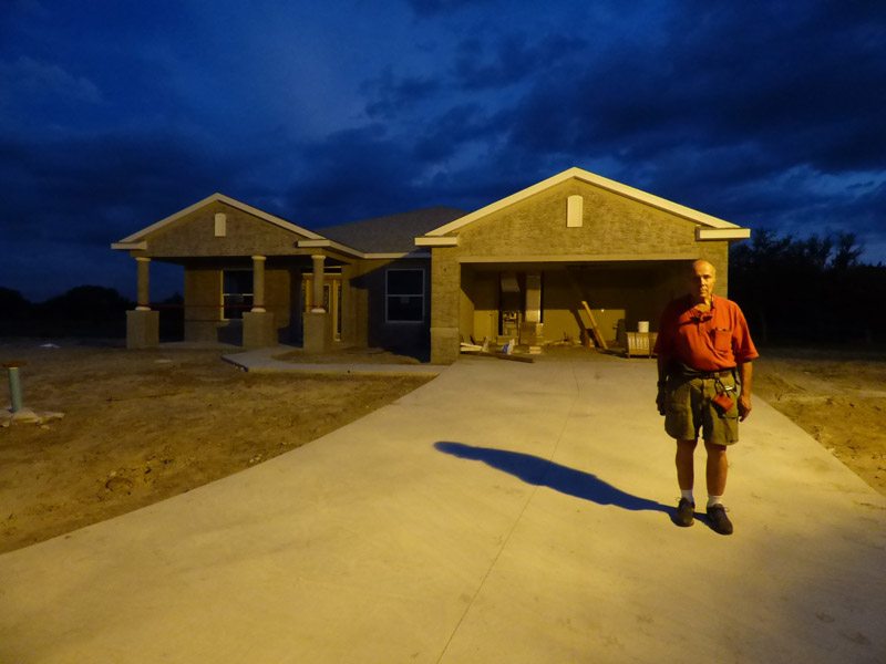 It was the end of dusk when we got to the house on our way home. The only thing that had changed was that the plumber had finished his job. We will henceforth be centered when we use the toilet.