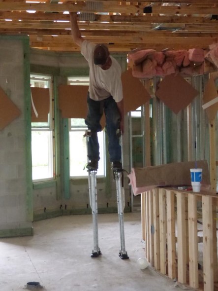 Inside was one of the strangest house construction sights I had ever seen. It looked like pizza boxes stuck up all around the walls. And, great blobs on insulation were crammed into spaces at the ceiling.