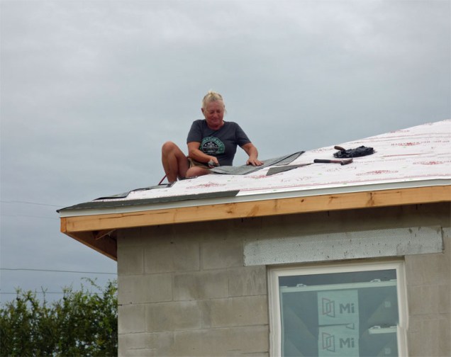 The lady roofer had worked her way all around the back of the house. We said hello and I asked where she is from. Poland. Her husband is from the Czech Republic.