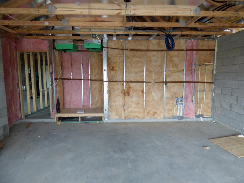 I think we need to get a pizza soon. The only wall that has insulation is between the house and the garage. I couldn’t figure out why there were two colors until I noticed that the yellow is in the wider spaces and the pink is in the narrower ones.