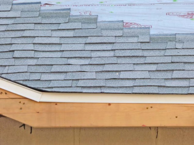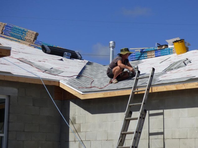 The two putting the roof shingles on quit at noon every day, before it got too hot up there. The company inspector told us that it is better not to be walking on the shingles when they are too hot from the sun.