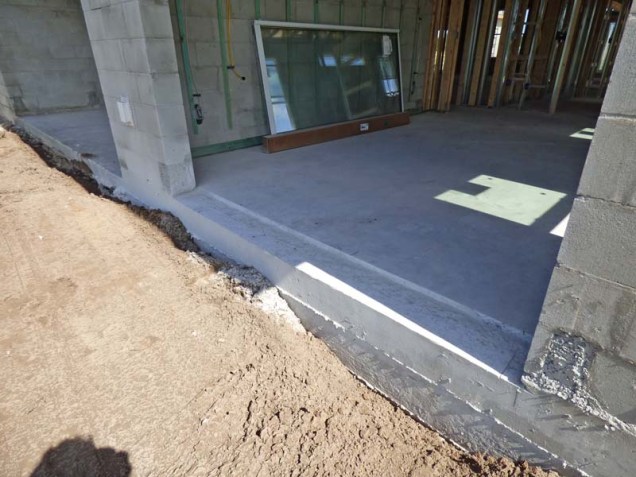 We continued around the back corner of the house and saw that some dirt had been filled in behind the house. Then I noticed that the “recess” had been cut out for the sliding-glass door in our bedroom.