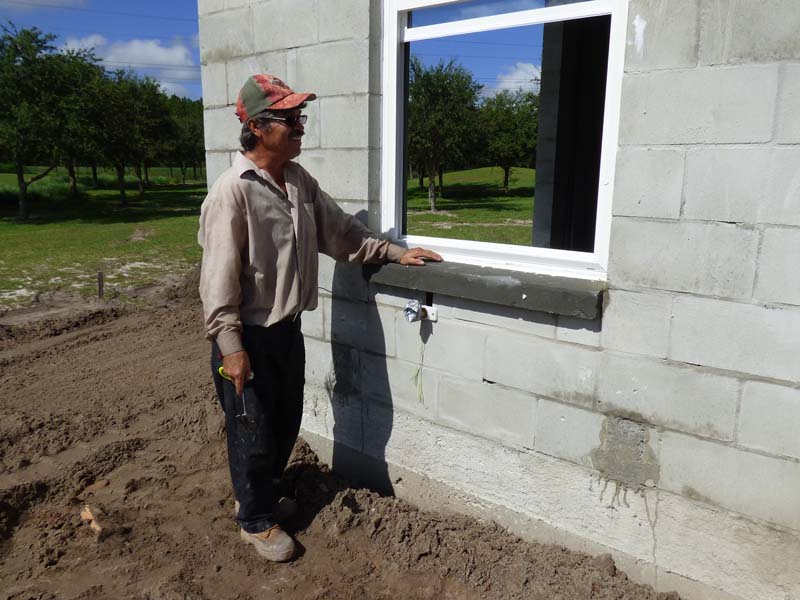 The plumber came around the corner of the house and said, “we have a problem”. His English was very poor so we followed him to figure out what the problem was. We had seen that the water spigot was very close to the window sill outside our bedroom. He was attempting to move the spigot to the left of the window, but that was solid concrete-filled concrete block. He pointed to a spot below the spigot and looked at me with a question on his face. I shook my head and said yes, that was fine. I think he was a little self-conscious when I took his picture.
