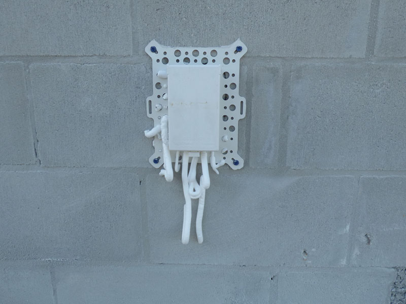 We noticed that several of the thru-hull fixtures had foam oozing out. It was dried at that point. This is an outdoor electrical outlet on the back of the house. I thought it was funny.