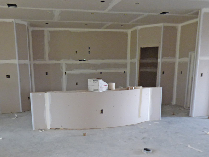 I really should have walked out faster. By the time we got to the garage door (or where one will be one day) the downpour started. I had brought my umbrella in with me, but we still got wet getting to the car.