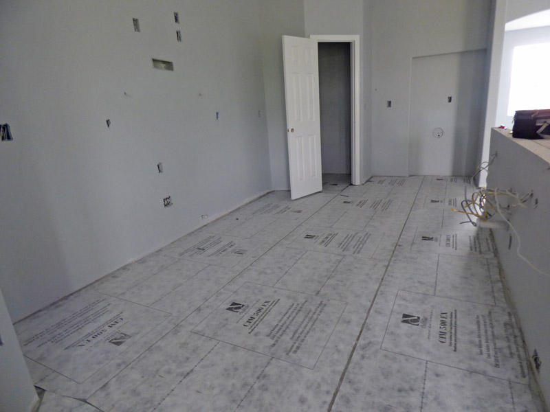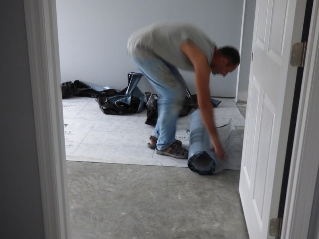 The writing on the underlayment says, “Crack Isolation and Sound Reduction Membrane”.  It was a wee bit cushy to walk on.