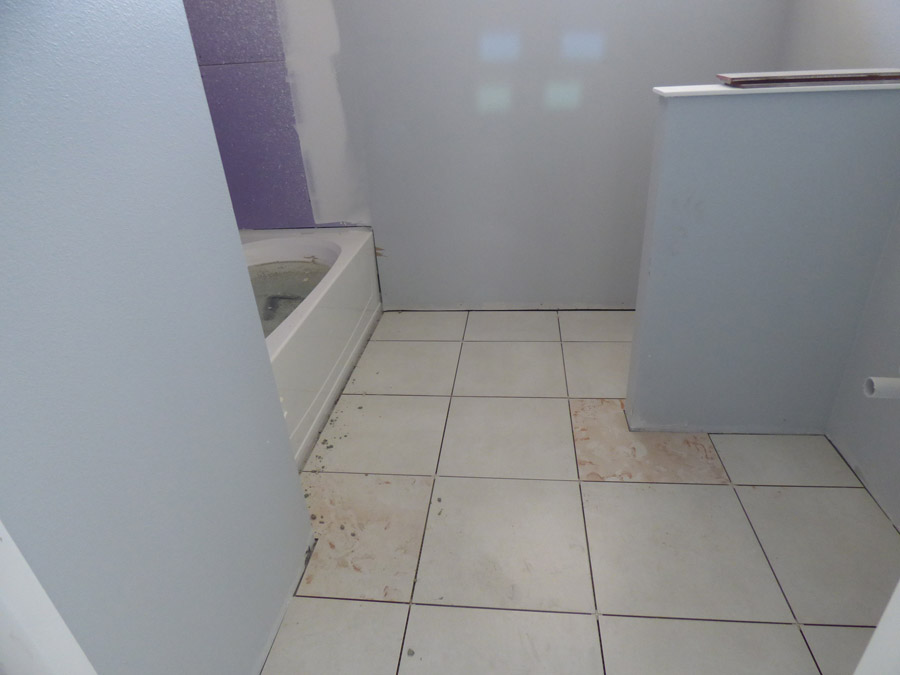 As commenters have pointed out, and even I have considered, when the furniture, rugs, and art are in, the less-than-perfect tile/wall match will probably not be noticeable.  If I still don’t like it, I can always paint.