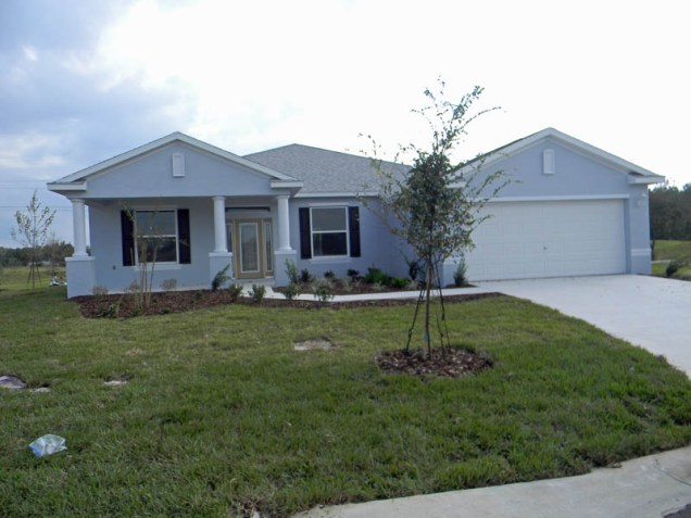 We drove straight to the house when we got back to Leesburg. There is a lawn, shrubbery, and some trees. And shutters, which I had not noticed until I got the pictures on the computer. There are also screens in the windows.