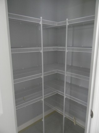 The pantry has shelves. I can’t wait to get my food out from under the sofa in the motorhome.
