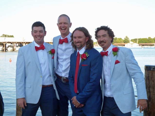 My son Christopher is the tall one with the skinhead. Mama has not been able to convince him to grow his hair. He was an excellent best man.