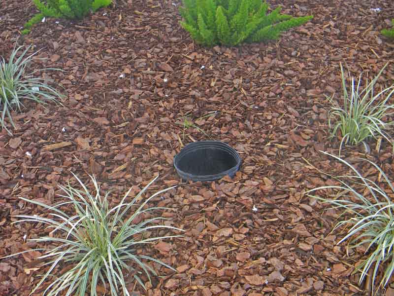 This is some funny landscaping. There is supposed to be a gardenia in this spot between the front porch and garage. They would not have planted it in a pot, so it must be to mark the spot for the plant.