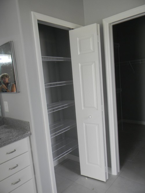 At last! The linen closet in the master bath has gotten a door.