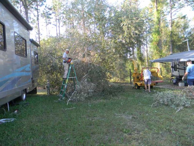 My alarm clock this morning was a chainsaw right outside my bedroom window. I didn’t have to look out to know what they were doing. It was the tree fallen between our two RVs during Topical Storm Irma.
