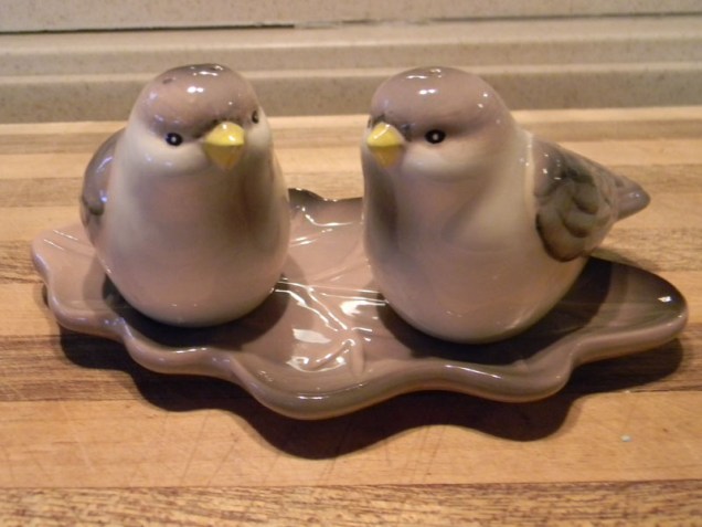 It was fun walking around from room to room talking about features, pros and cons, their house, and houses in general. So, the tour took a while. Linda presented me with a small house gift which I am going to use often. It is a little leaf-shaped tray with two small bird salt and pepper shakers. Salt and pepper do not get much cuter than this.
