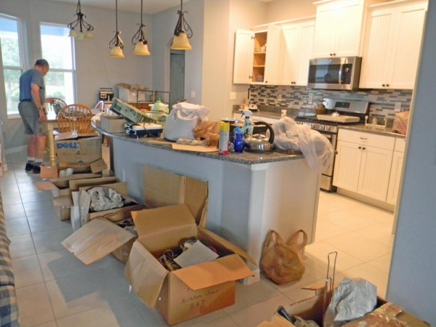 Two movers arrived right on time. We had already begun unloading smaller items. We told them to put any boxes with Andy’s name on them in his office. Boxes labeled kitchen and dining room were self-explanatory. I led them to the spots where I wanted the furniture placed. Everything else (many, many boxes) went into the garage. They had the truck empty in two hours.
