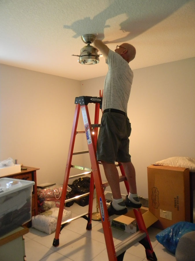 On Tuesday morning, we returned the rental truck and drove to Home Depot to buy ceiling fans. I had intended to do that later, but Tom kept mentioning them. On the advice of everyone who we talked to about fans, we got one for every room. Tom spent the rest of the day installing them. That guy really knows how to spend a vacation.