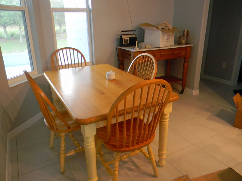 The kitchen table is a dilemma. I turned it ninety degrees to make room for the tall table in the background. I really love that marble top. I may turn the table forty-five degrees to see if that fits better. I love my kitchen table too. It’s where Daughter Jennifer did all her homework.