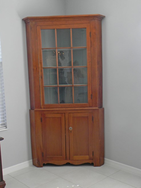 When we were unloading the storage unit, I almost unloaded this corner cabinet. It seemed too big for the small room. I did not care for it in the Moulton dining room but just love it in my parlor. I’m so glad I did not sell it to the antique dealer in Tappahannock.