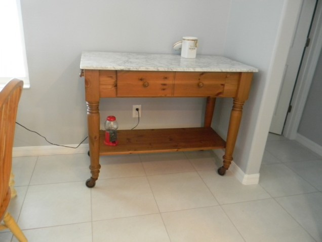 Back to the kitchen. I decided I could not live without this marble-topped cart. It has to stay there.
