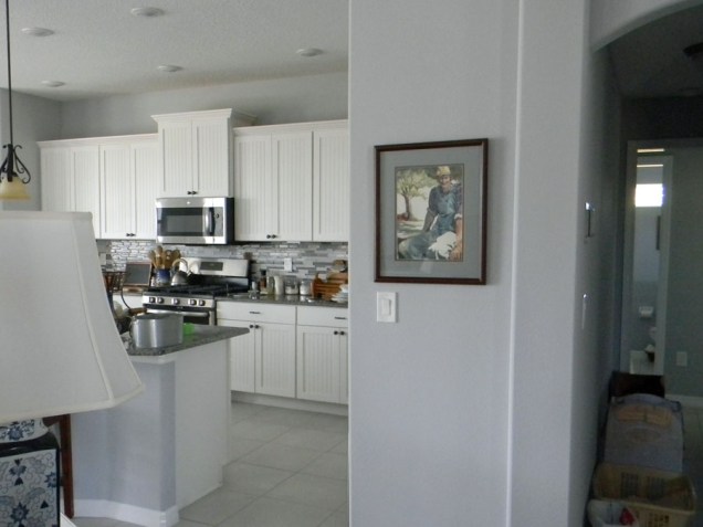 The house is full of our things and too much of it is still on the floor. Rather than continue my usual routine today, I decided to hang some pictures. As with other things, I have been moving the pictures around the house and setting them on the floor in different places. Next day, I might rearrange a few.