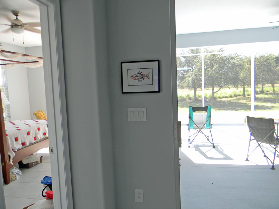 I chose a small spot between doors for my Haida Salmon I bought in Vancouver, British Columbia. We were living on the boat at the time and Andy asked, “What are you going to do with it?” My plaintive reply (that he still likes to quote) was, “Someday I’ll have a wall”. Now my someday has come and my fish is on my wall.