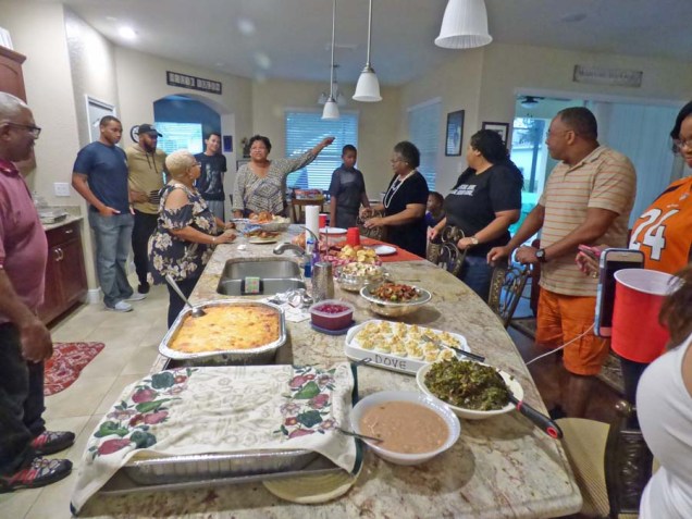 There were twenty-two of us. The old folks sat at the dining room table. The younger adult generation sat around the kitchen counter. That grandchild generation sat outside on the patio. They had gathered from a distance and were having a grand time getting together. I just enjoyed being in the midst of a big, happy, and gregarious family celebration.