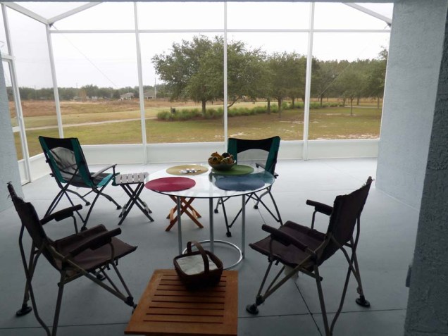 We have our camping chairs out on the lanai. I found a glass table in the garage that I bought for our kitchen table in 1980. Daughter Jennifer was a newborn. I still remember carrying her around the store that day.