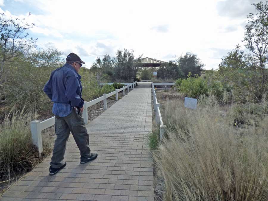 We discovered another pavilion. It has a circular walkway around it with spoke-boardwalks radiating out from it. There are butterfly gardens between the boardwalks.