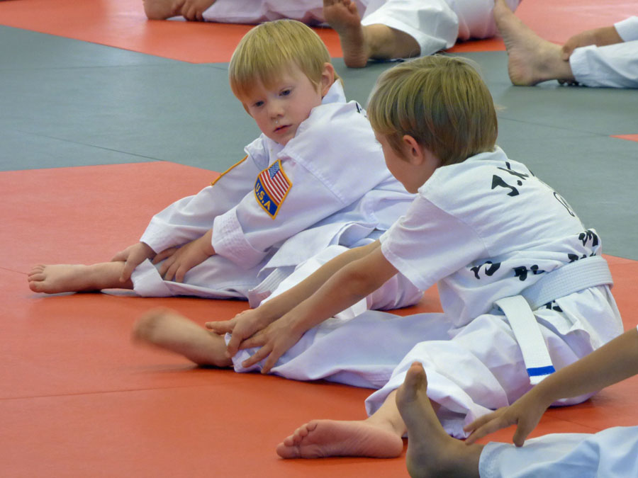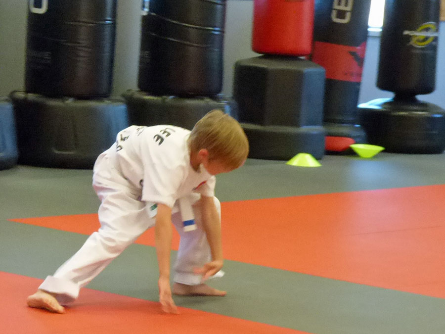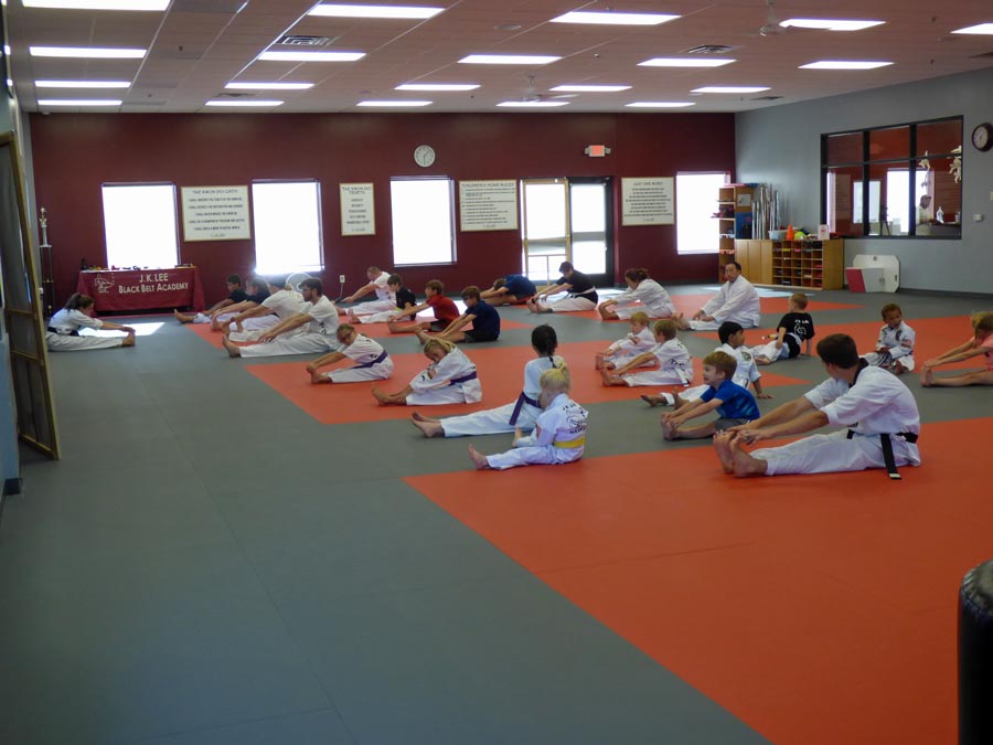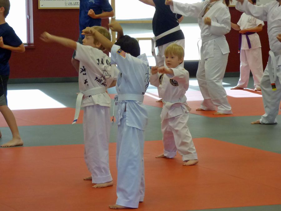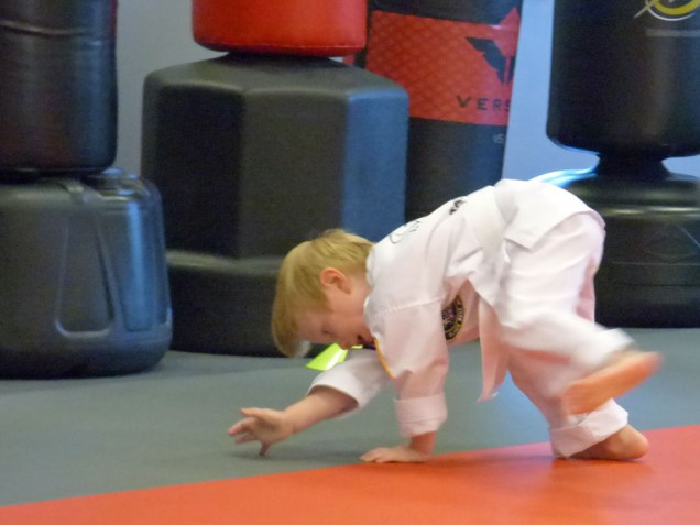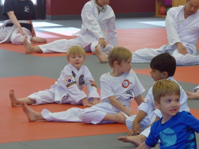 All ages and abilities were in the same class.  The more advanced ones were up front and the newest were in the back. Son-in-Love George is in the front row, the first person next to the children.  They just started this class a few weeks ago, after Owen won a free class at some event.  They signed up after the first lesson