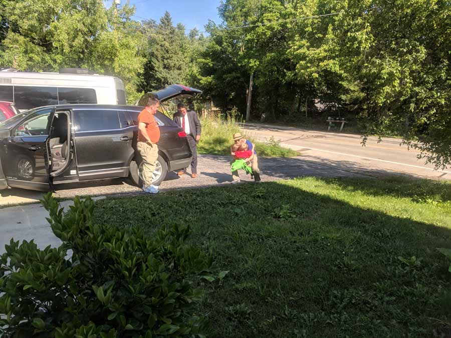 They did not come home in the grand style in which they left for China. This was a regular airport limo. Cam was out the door to greet his Papa as soon as they pulled into the driveway.