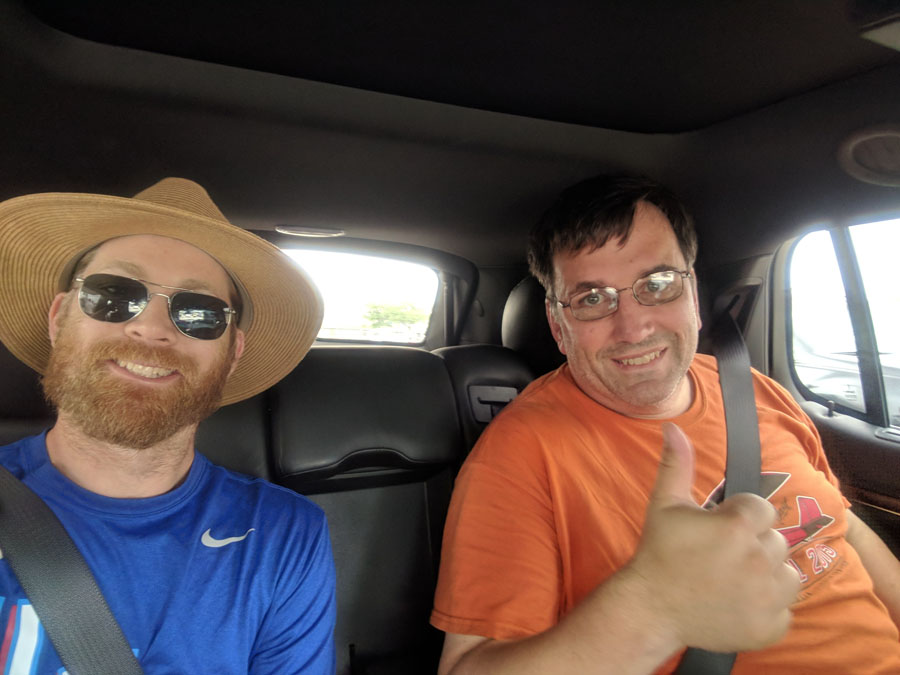 George took a picture of himself and his co-worker in the airport limo on the way home from O’Hare.