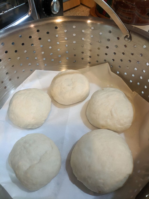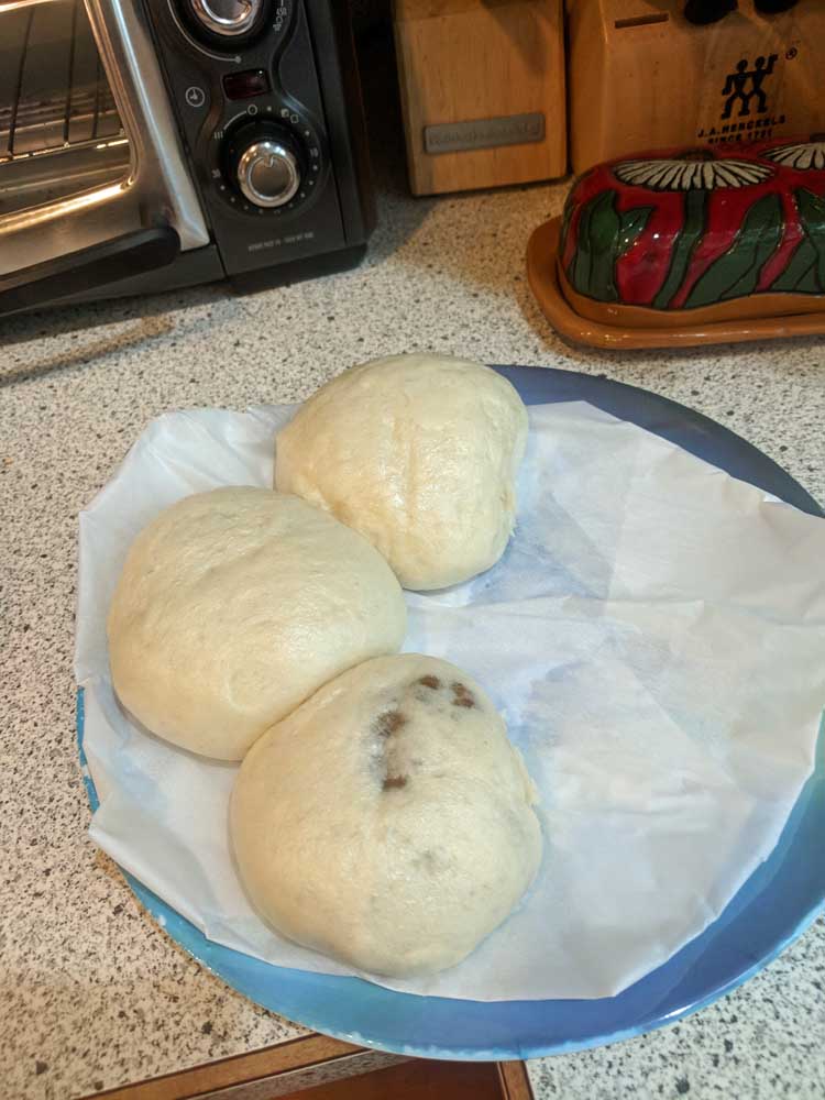 The buns did not look much different after steaming than they did before steaming. They felt “cooked” though when I touched them with my finger. Several disappeared from the plate before I got a chance to photograph them. I see that one had a thin spot with visible beans.